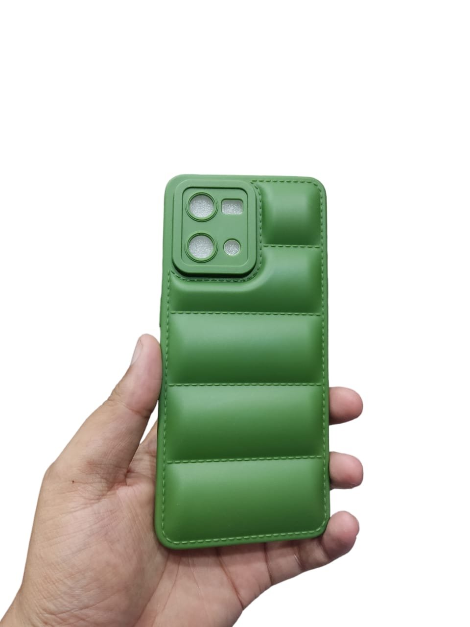 Chic Design: Features a puffer jacket-inspired design with a soft matte finish for a modern look and enhanced grip.