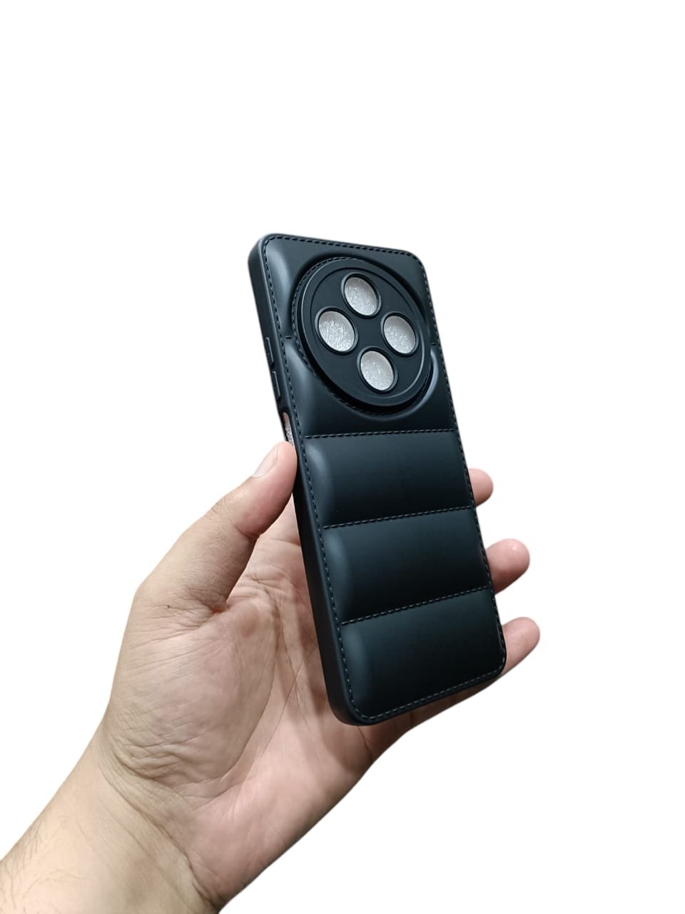 Chic Design: Features a puffer jacket-inspired box design with a quilted texture for a modern look and enhanced grip.